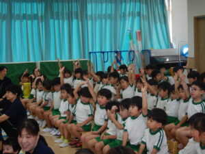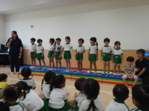 つづいて、幼児さんです。元気に名前や、お友だちからの質問に答えることができました!!