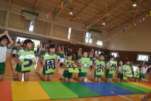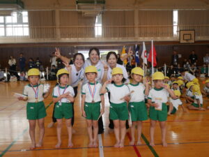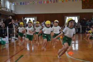 かけっこでは、力いっぱい走りぬき、遊戯ではクラスの友達と息を合わせて、競技では協力する楽しさを味わうことができました。