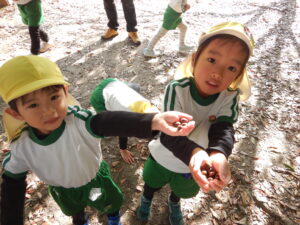 「どんぐりみつけた~!」「大きい鳥いる!!」と色々な発見がありました。
