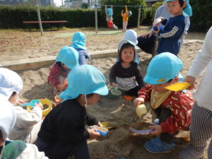 公園では、滑り台や砂遊びでたくさん遊びました(^▽^)/