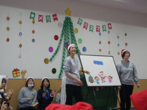 クリスマスにちなんだ英語や「thank you」を教えてもらいましたよ。