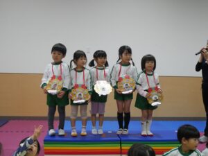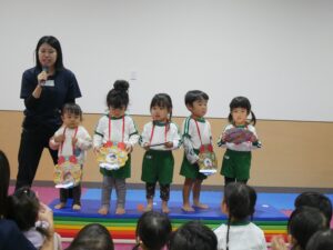 乳児さん、幼児さんが前に出て、自分の名前や年齢を発表してくれました。