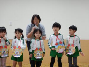 皆がホールに集まるまでの間は、子どもたちの大好きな「パプリカ」を歌いながら待ち時間も楽しく過ごせました。自然と歌声がどんどん大きくなり、会が始まる前から賑やかな雰囲気になりました。