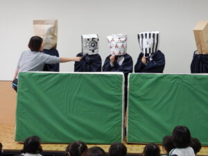子どもたちからの質問に声色を変えながら答える先生たち。
