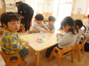 日々の子どもたちの成長をそばで支え、かわいい場面をたくさん見ることができました。りす組はあおむしがちょうちょになるように、うさぎ組に向かって羽ばたきます!